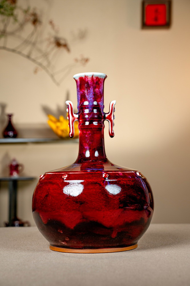 卢占召,出身钧瓷世家,卢家世代钧窑直系第六代传人。河南省陶瓷艺术大师,许昌市非物质文化遗产传承人,河南省青年美术家协会会员。受卢家老一辈人在钧瓷方面的影响,自幼跟随父亲卢俊岭学习制作模型,釉料,配釉,拉坯成型,烧制等钧瓷系列工艺。擅长手拉坯和卢钧的烧制工艺。使用大漆工艺和钧瓷的完美结合,并创作出“繁华”系列作品。在烧成反面大胆尝试“气炭”“气柴”气煤“等并烧制出完美作品。在作品的研发发面,更倾向于作品的美观性,实用性,有趣性,使更多人喜欢钧瓷爱上钧瓷