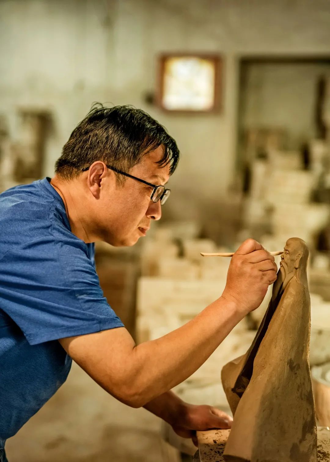 王丽锋,1970年出生,1987年毕业于神垕陶瓷高中学校,1988年进入原钧瓷一厂工作,进厂跟随中国工艺美术大师刘富安学习造型设计。后又师从中国工艺美术大师杨志学习钧瓷技艺。2003年, 他成立“一把泥钧艺工作室”,任厂长、技术总监至今。作品及论文曾多次获省、市级大奖。现为河南省陶瓷艺术大师。