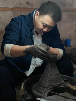 张智南,90后汝瓷匠人,中级陶瓷工艺师,瓷禾张青瓷工作室主理人,以当代青年视角重塑千年窑火之美。深研宋代汝窑制瓷,精通玛瑙入釉、支钉满烧等核心技艺。其作品既承袭汝瓷“雨过天青”的古典釉韵,又融入现代极简美学理念,作品风格及釉色守正创新,设计制作的《特号支烧金福聚宝盆》《黄财神汝瓷璧》在十三届大地奖上摘得金奖,《四灵呈祥》《仿宋三足奁》和《龙生九子》在十二届、十三届大地奖中均获得银奖。其作品《黄财神汝瓷璧》、《仿宋莲花式温碗》更是被龙泉市博物馆永久收藏,作为非遗传播先锋,他创建瓷禾张工作室,并在2025年平顶山汝瓷文化推广活动《汝瓷集》上荣获“先进企业”称号。