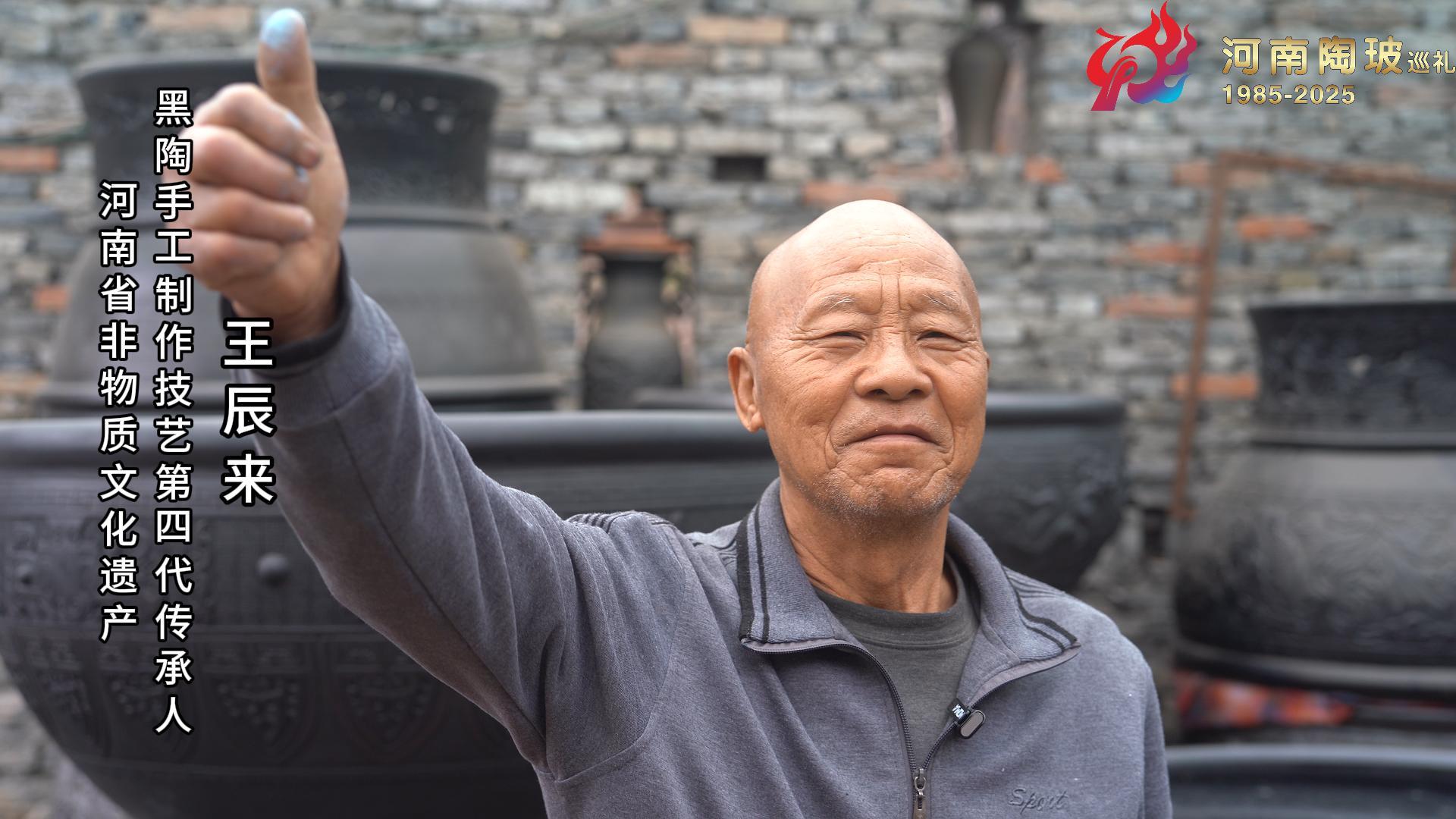 河南省非物质文化遗产黑陶手工制作技艺第四代传承人王辰来为河南陶瓷40年成果展点赞