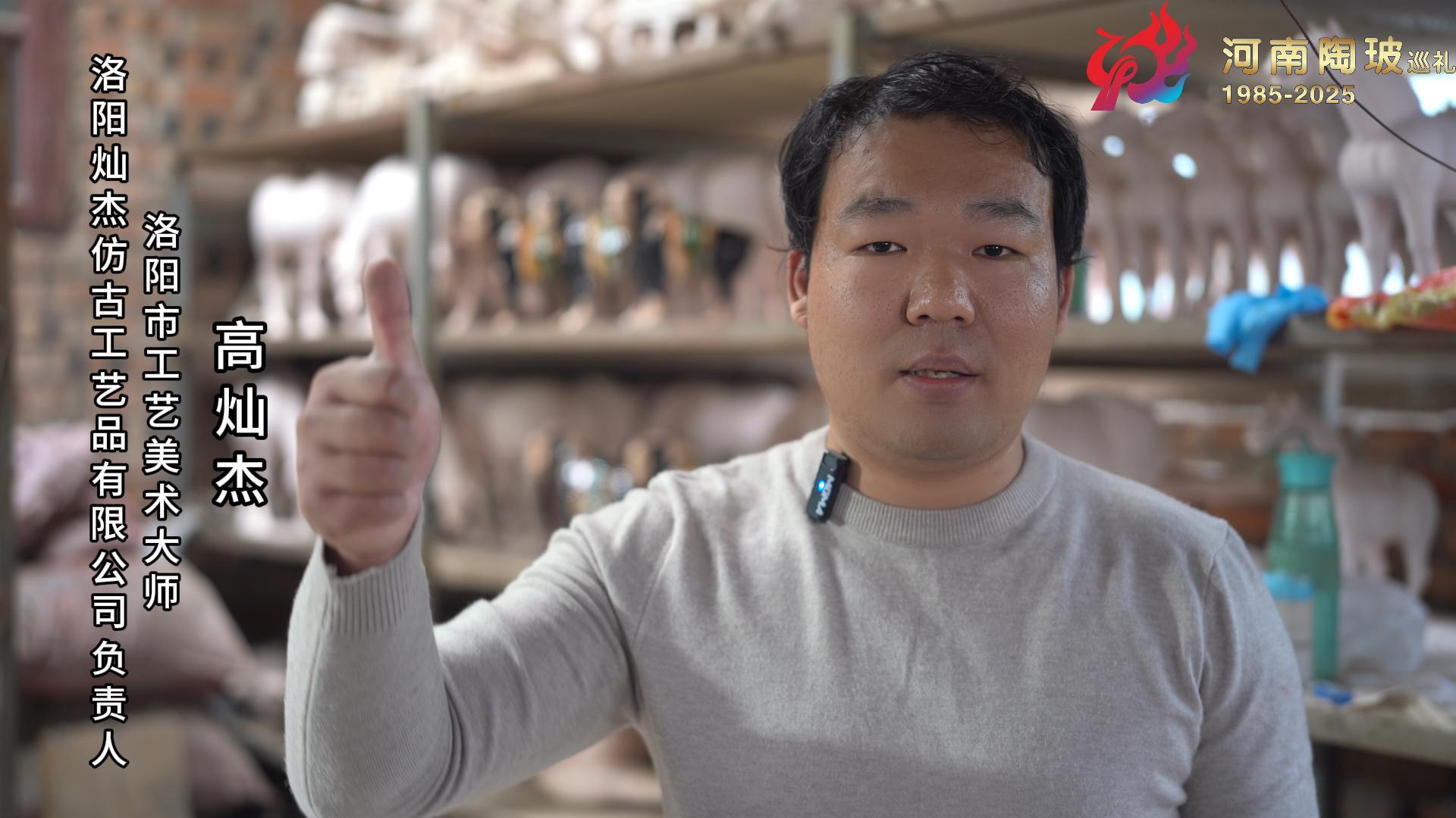 洛阳灿杰仿古工艺品有限公司负责人高灿杰为河南陶瓷40年成果展点赞