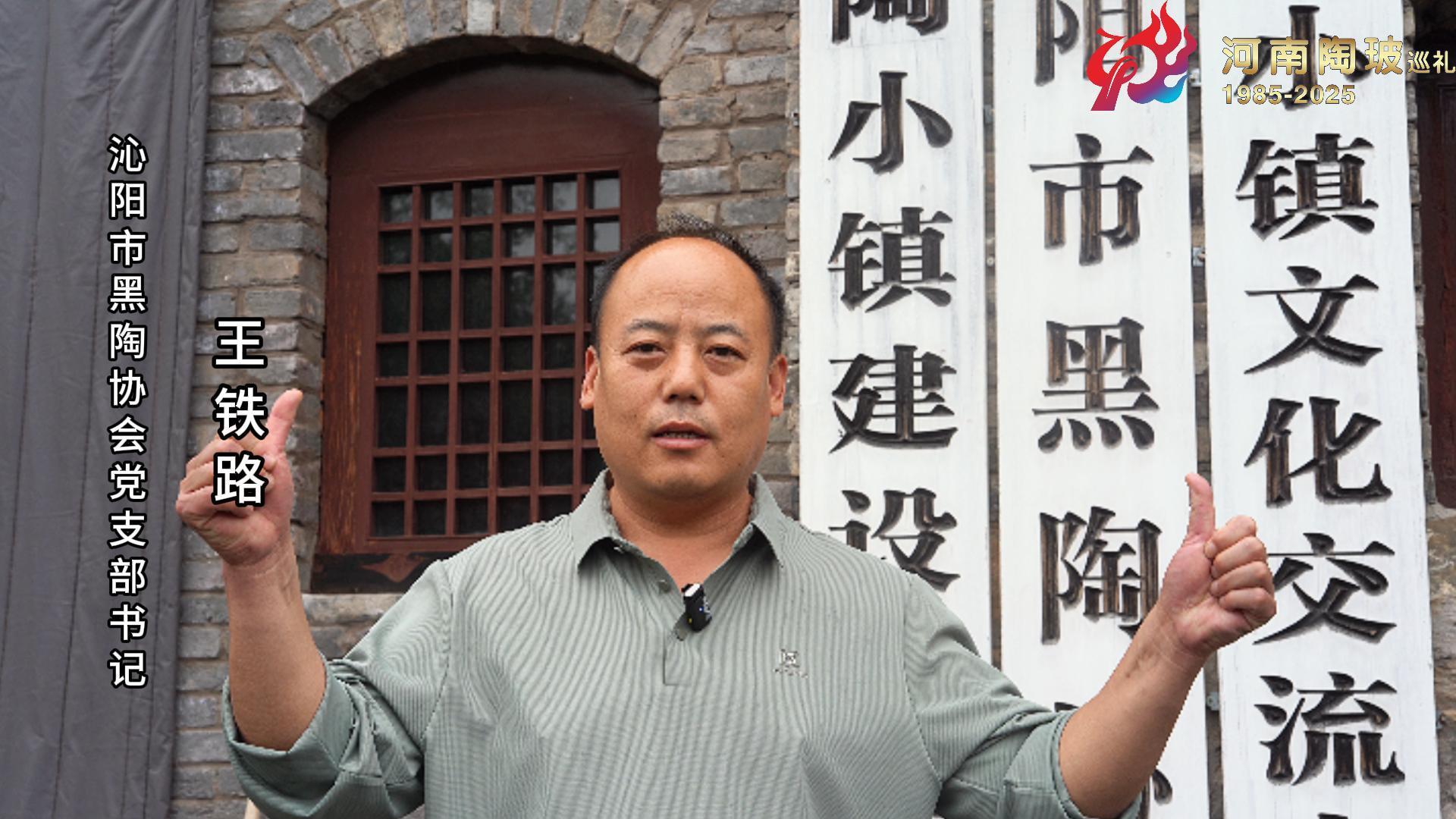 沁阳市黑陶协会党支部书记王铁路为河南陶瓷40年成果展点赞